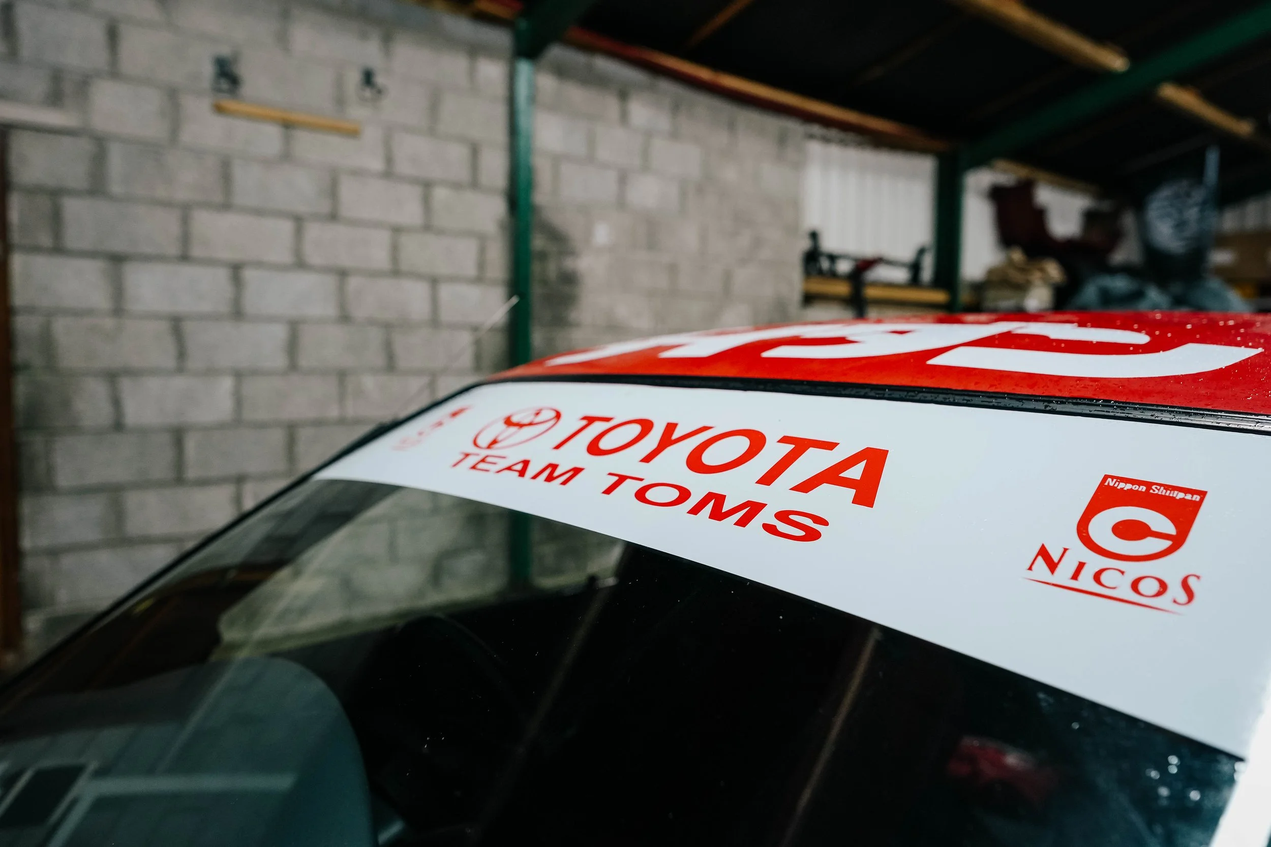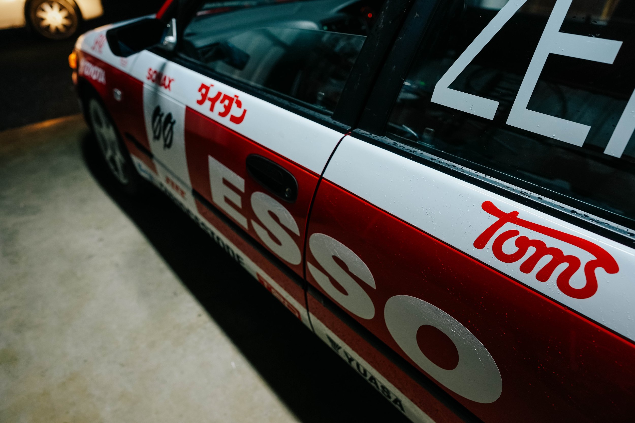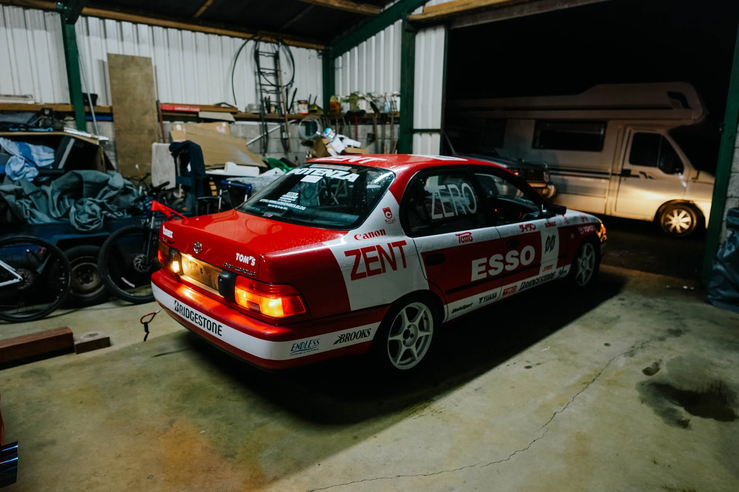 I really wanted to give this car some edge, it is a trackcar for the most part, at least until it becomes 30 years old. It was pointed out to me that on a few occasions that I design and make a lot of stickers and liveries for people, but I didn't have any on my own machines. I've been hugely inspired by JTCC and Super Touring ever since I became involved with cars and even more so after befriending my good buddy Nathan many years ago and what better way to give this car a more personal touch than to pay homage to the 1994 JTCC Corona/Carina driven by Masanori Sekiya and doing a full ESSO/ZENT inspired livery. Having a red base made life easy, the larger white segments though, were far from it. But we got there in the end and the final result is something I'm incredibly proud of.