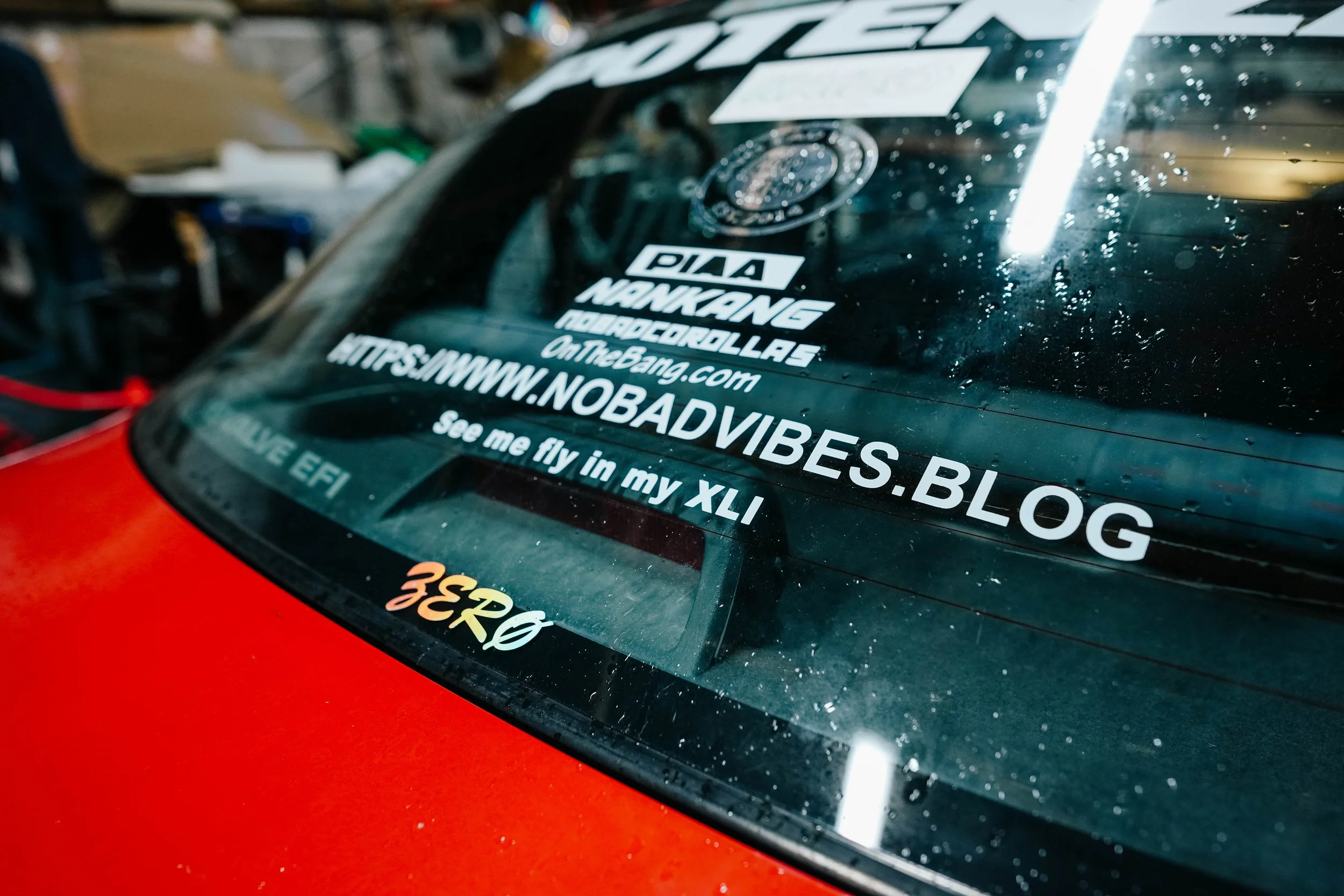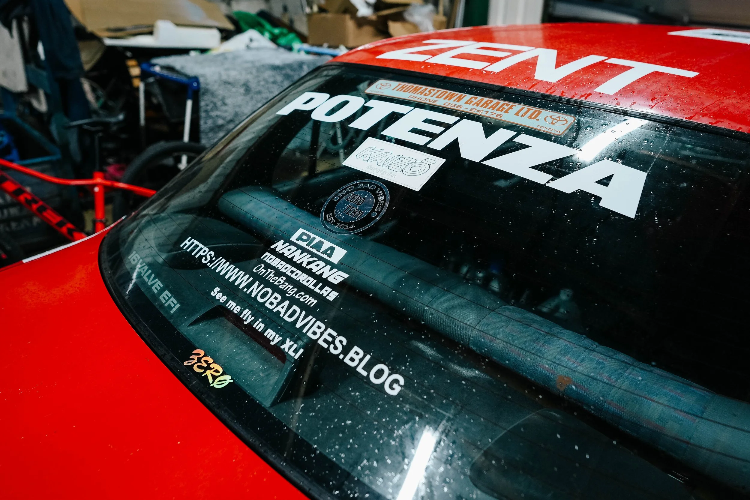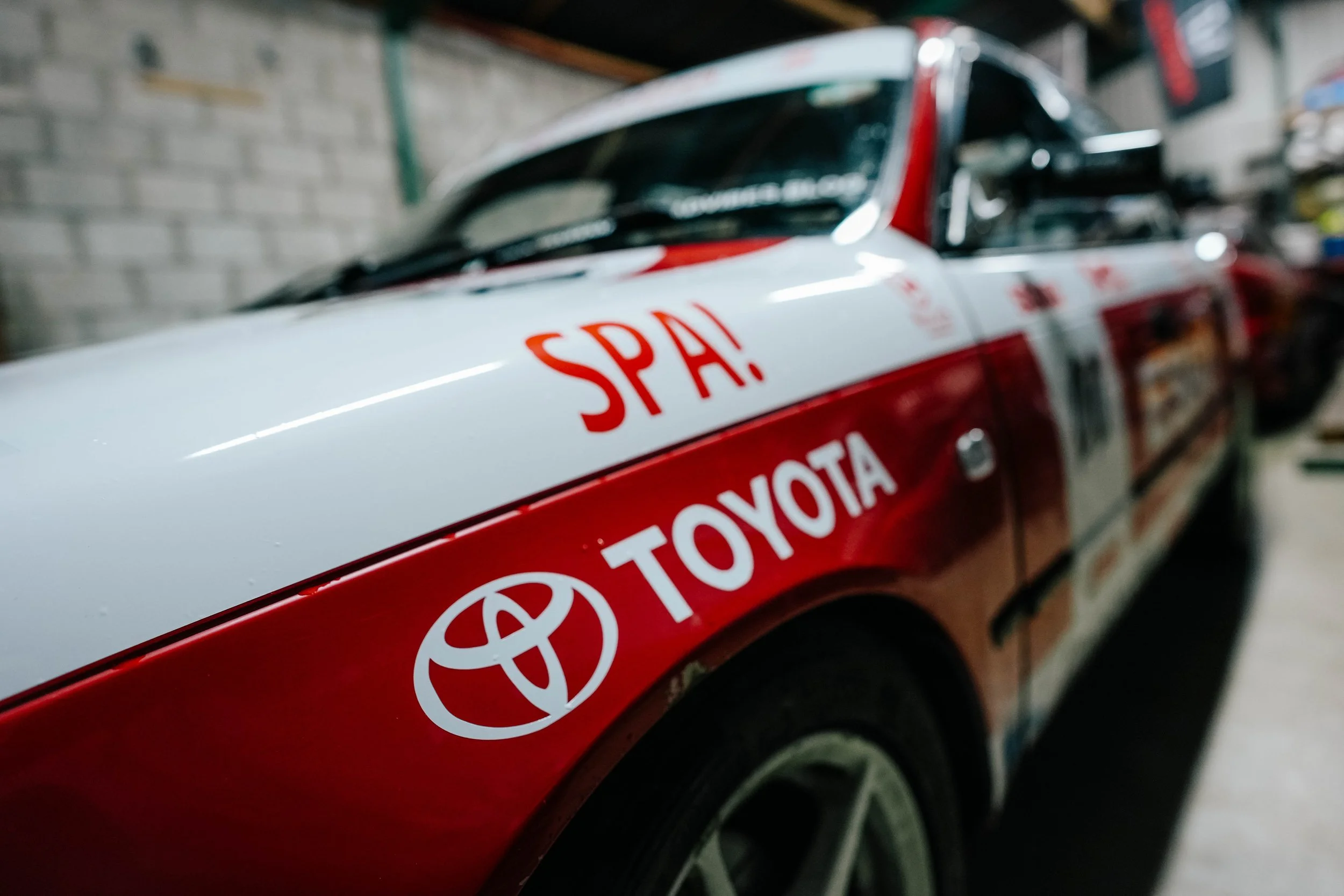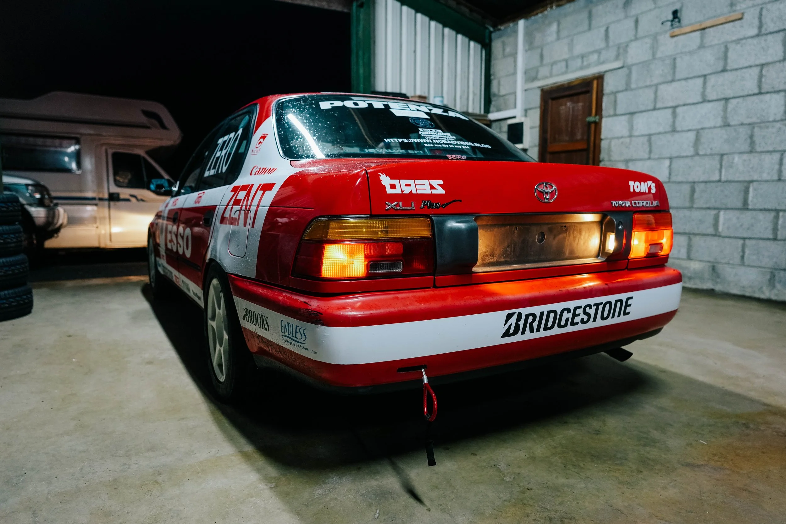 I really wanted to give this car some edge, it is a trackcar for the most part, at least until it becomes 30 years old. It was pointed out to me that on a few occasions that I design and make a lot of stickers and liveries for people, but I didn't have any on my own machines. I've been hugely inspired by JTCC and Super Touring ever since I became involved with cars and even more so after befriending my good buddy Nathan many years ago and what better way to give this car a more personal touch than to pay homage to the 1994 JTCC Corona/Carina driven by Masanori Sekiya and doing a full ESSO/ZENT inspired livery. Having a red base made life easy, the larger white segments though, were far from it. But we got there in the end and the final result is something I'm incredibly proud of.